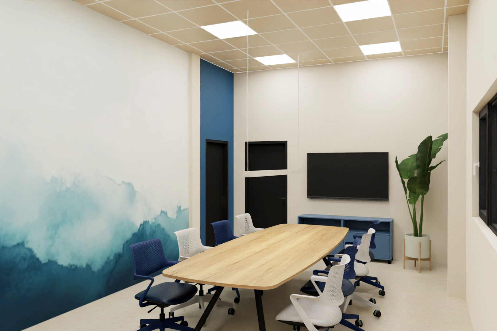 De werkplekken zijn licht en overzichtelijk ingericht, met ruimte voor concentratie én samenwerking. De vergaderruimtes en het directiekantoor hebben een rustigere, meer zakelijke uitstraling, terwijl het plein juist losser en informeler aanvoelt. Zo heeft elke plek zijn eigen karakter, maar blijft het geheel in balans.
